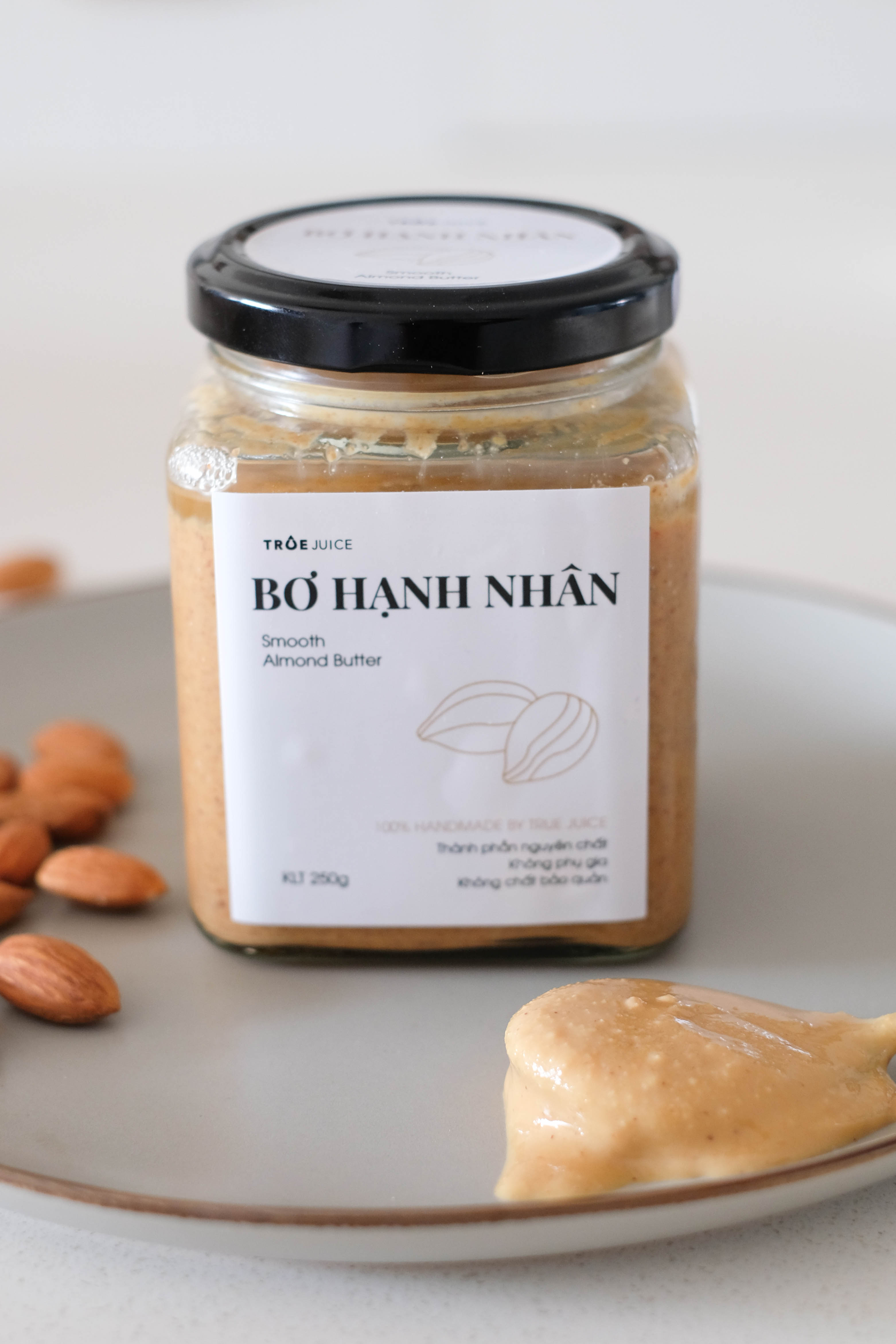 Bơ hạnh nhân của True Juice được làm từ những hạt hạnh nhân nhập khẩu cao cấp, được rang giòn, thơm nức rồi đem xay thủ công kĩ càng. Vì không sử dụng đường công nghiệp nên bơ có vị ngọt nhẹ, không gắt, không gây chua miệng và không gây ngán, hỗ trợ rất tốt trong quá trình giảm cân.