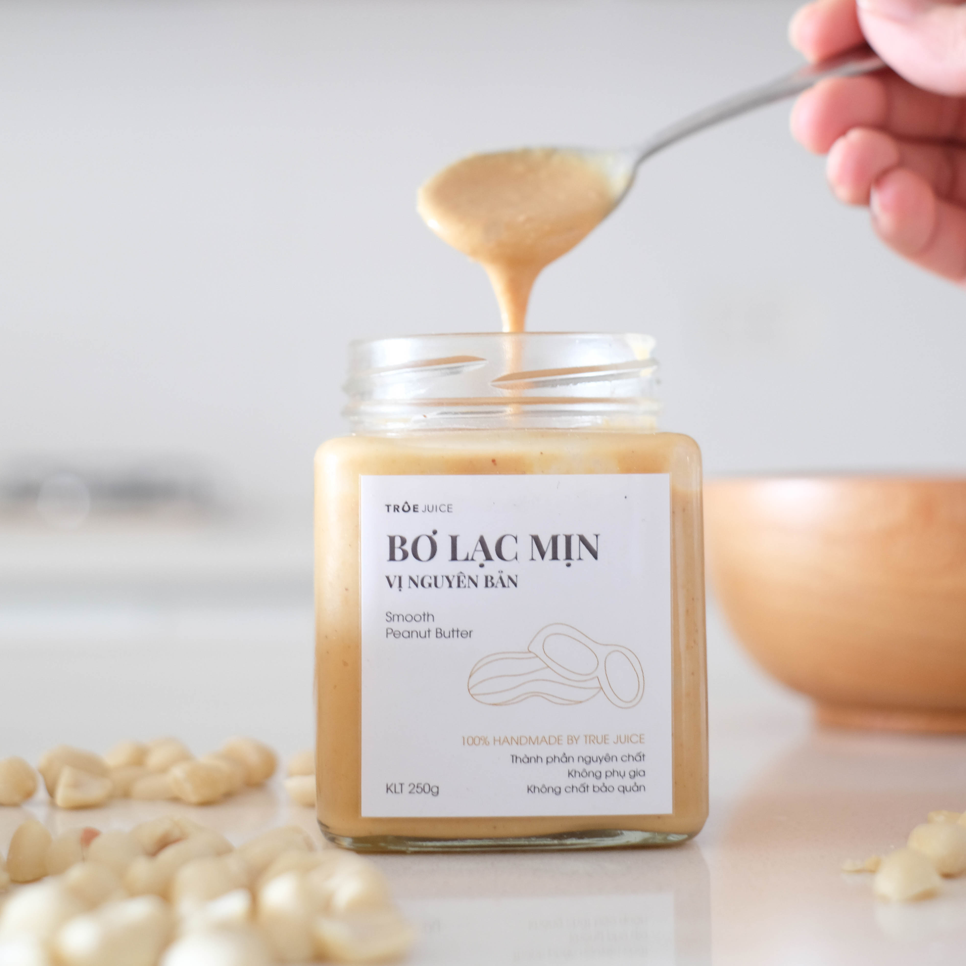 Bơ lạc True Juice với hương vị thơm béo tự nhiên, hậu mặn ngọt hòa quyện, chất bơ sánh mịn hoàn hảo mang đến cho gia đình bạn những bữa ăn ngon, nhanh gọn và đủ đầy dinh dưỡng. Bơ được làm thủ công từ hạt lạc sẻ hảo hạng và các loại gia vị tự nhiên, là "siêu thực phẩm" dinh dưỡng, cung cấp nguồn năng lượng dồi dào và các dưỡng chất thiết yếu cho cơ thể.